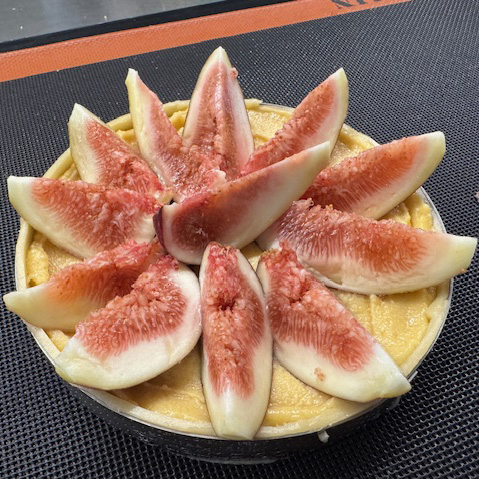 クッキー生地にアーモンドクリームを敷き詰めて、上からカットしたイチジク を並べて、焼き上げました。